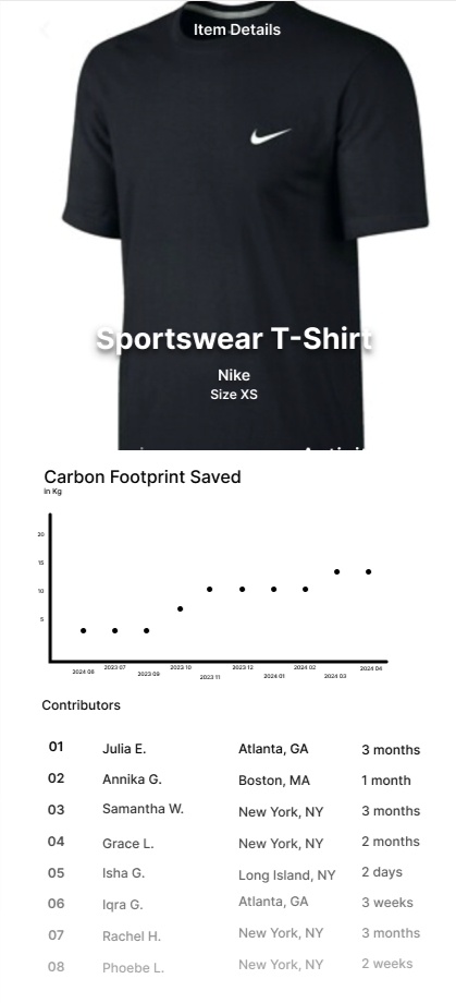 Visually track the journey of an item, including history of previous owners. This forsers a sense of community and connection while being recognized and enhancing their reputation through promoting sustainability.